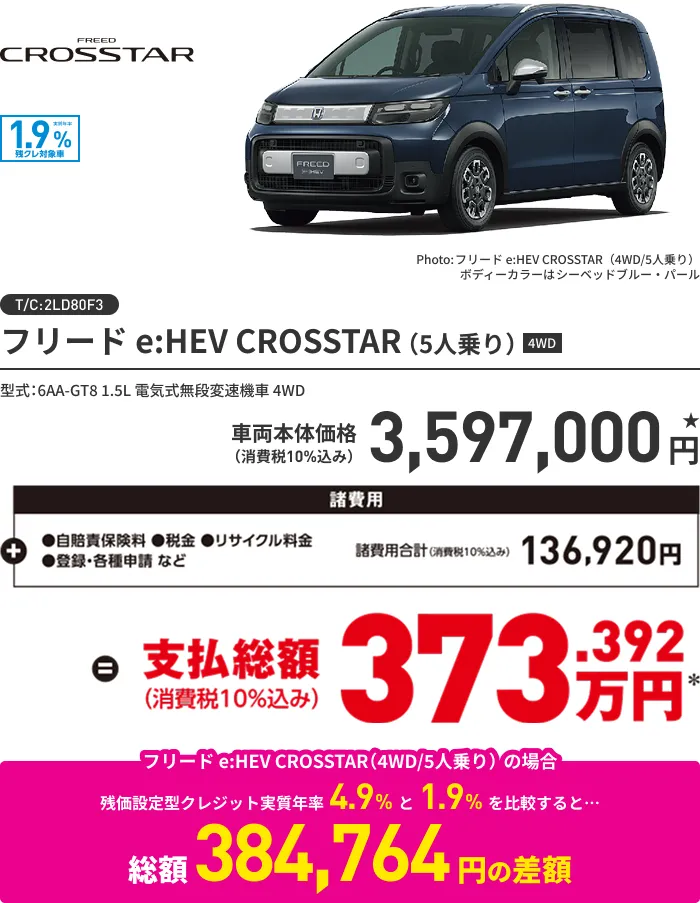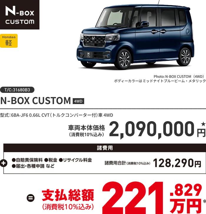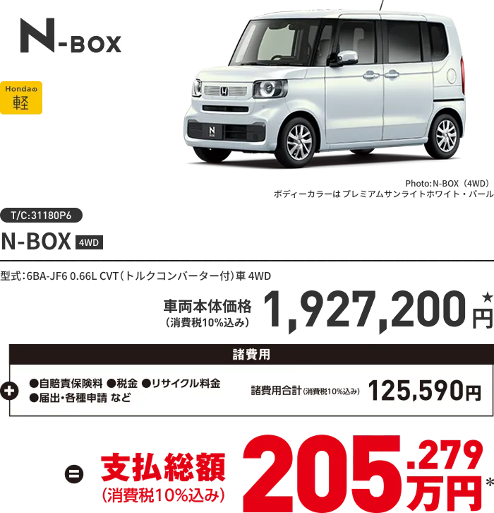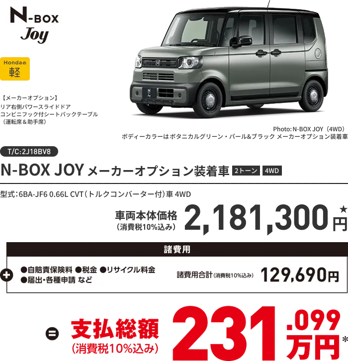 ★価格はすべて消費税 (10%) 込みの価格です。 車両本体価格には消費税以外の税金、保険料、登録等に伴う諸費用、 リサイクル料金は含まれておりません。