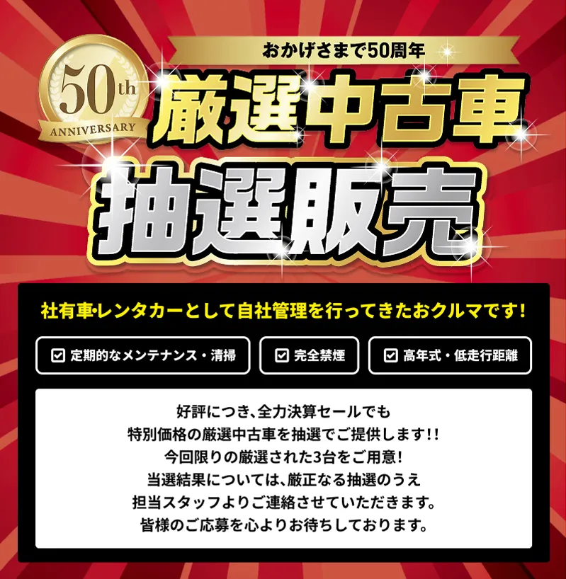 ■車両本体価格は、応急パンク修理キットつきの価格です。■販売店でセットする付属品は別途です。車両本体価格には特別装備品以外のディーラーオプションの価格は含まれておりません。■メーカーオプションは組み合わせによっては同時装着できない場合がございます。また他のメーカーオプションとセット装着になる場合がございます。■車両本体のみでもご購入いただけます。■写真は実際の色と多少異なる場合があります。■掲載内容に明らかな不備があった場合、やむなく販売をお断りすることがあります。あらかじめご了承ください。■詳しくは営業スタッフまでお問い合わせください。