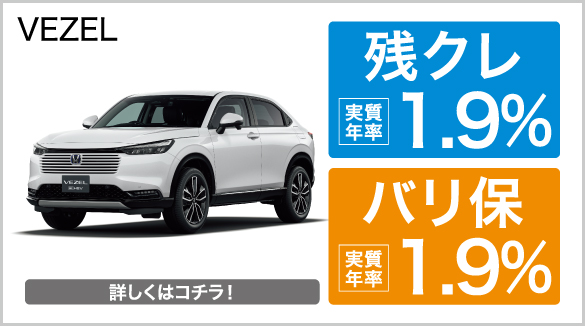 【残価設定型クレジットのお支払い例について(FREED・VEZEL・WR-V)】・上記お支払い例は2025年10月の一例です。・上記お支払い例は、初回お支払い月を2025年12月で計算した一例です。※本クレジットは最終回に、@新車に乗り換えA乗り続ける(最終回お支払い額を一括または再クレジットでお支払い)B車両を返却 のいずれかをお選びいただけます。@、Bの場合、内外装キズや走行距離などの確認事項があります。事前に定めた条件を超える場合には、その差額分を別途ご負担いただきます。詳しくは営業スタッフまでお問い合わせください。